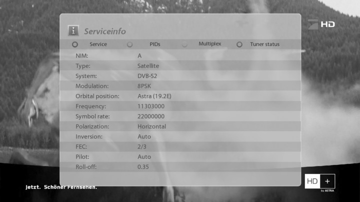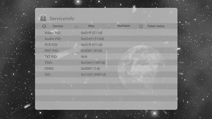 In this menu, you can see all the parameter data of the current channel. The service information is well