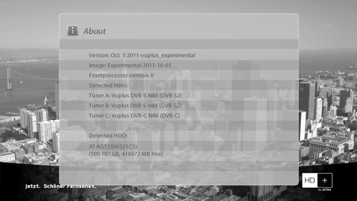 This menu is for you to check the current system of your Vu+. You can see the following information: