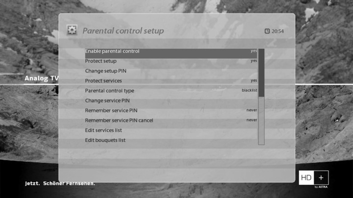 Here you can define a PIN code required to change services to be included in the parental control list.